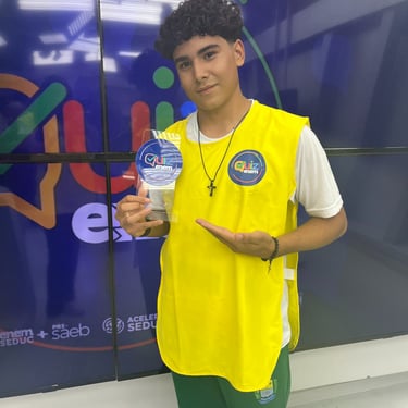 Representando a 10ª GRE, nossos alunos participaram do Programa QUIZ ENEM, exibido na TV Meio e apresentado por Suyanne Pessoa, uma iniciativa da Seduc que visa fortalecer a preparação dos estudantes para o Exame Nacional do Ensino Médio (ENEM).