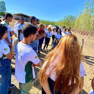 A atividade teve como objetivo aproximar os alunos da realidade do campo, proporcionando contato direto com a rotina de uma propriedade rural. Durante a visita, os jovens puderam conhecer a estrutura e o funcionamento da fazenda, além de trocar experiências e aprender com os profissionais que atuam no local.