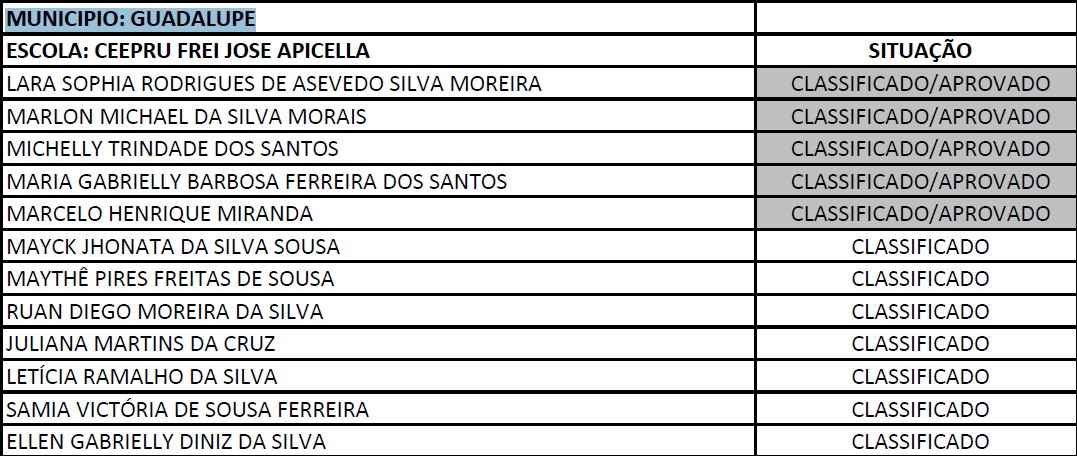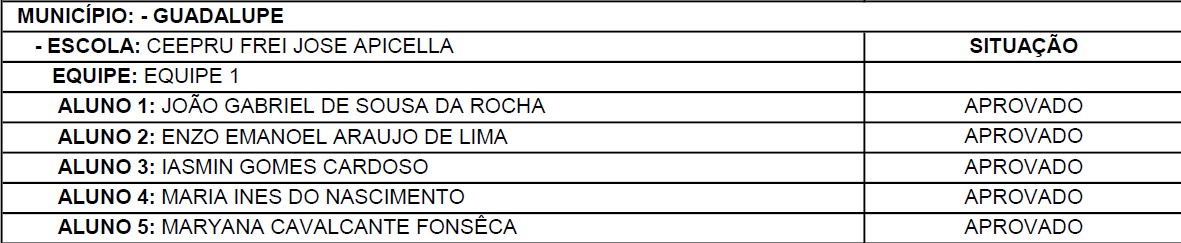 APROVADOS DO CURSO TÉCNICO EM INFORMÁTICA