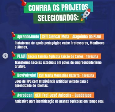 Entre os projetos selecionados para representar o estado do Piauí, está o AgroScan, iniciativa desenvolvida por alunos do CETI Frei José Apicella. O projeto foi escolhido entre diversas propostas e está entre os apenas quatro selecionados em todo o estado.