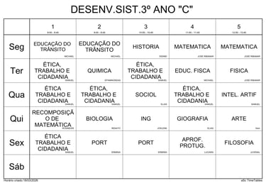 Acompanhe aqui o horário atualizado das aulas do mês no CETI Frei José Apicella. Fique por dentro das disciplinas, turnos e alterações semanais.